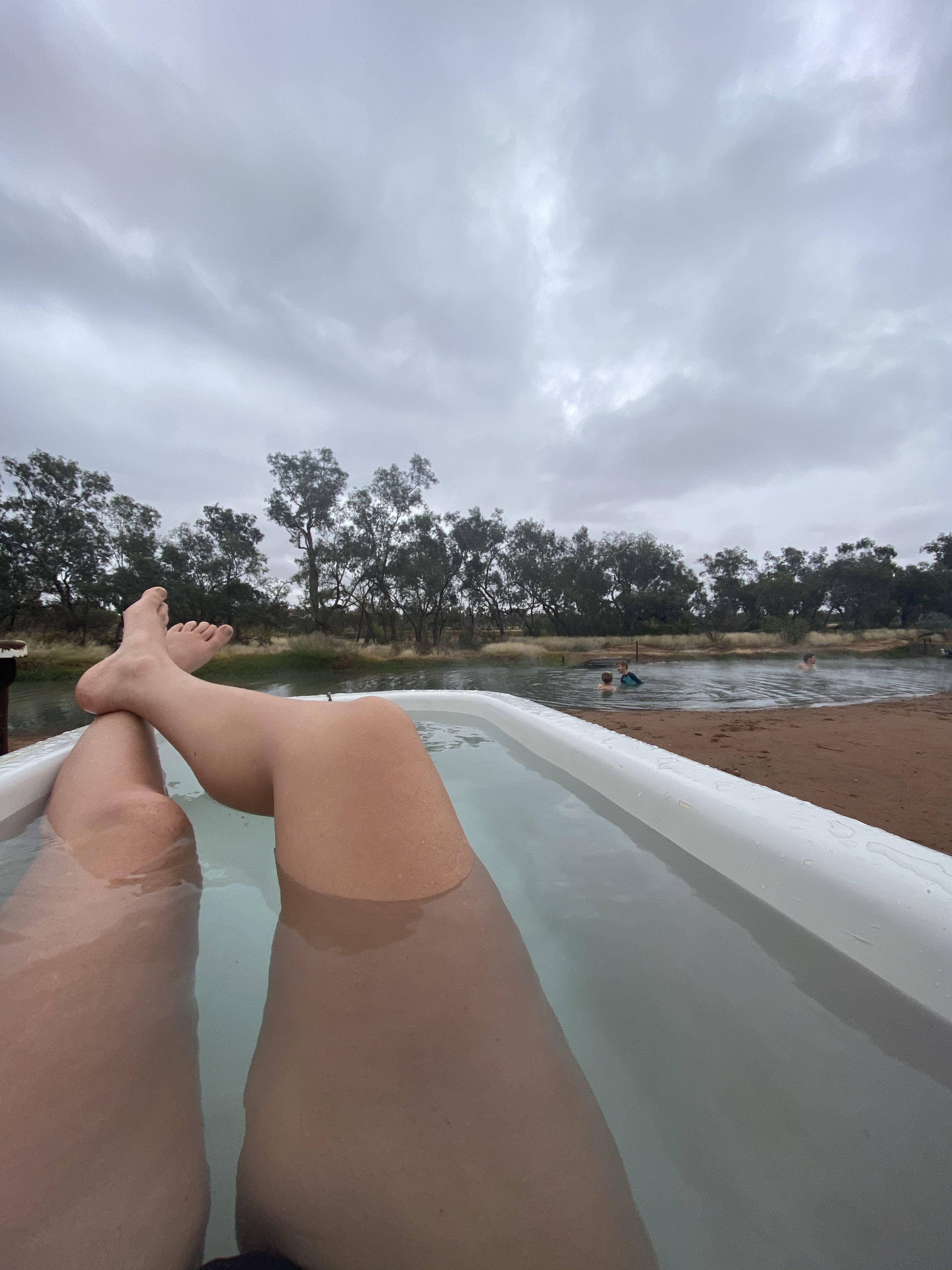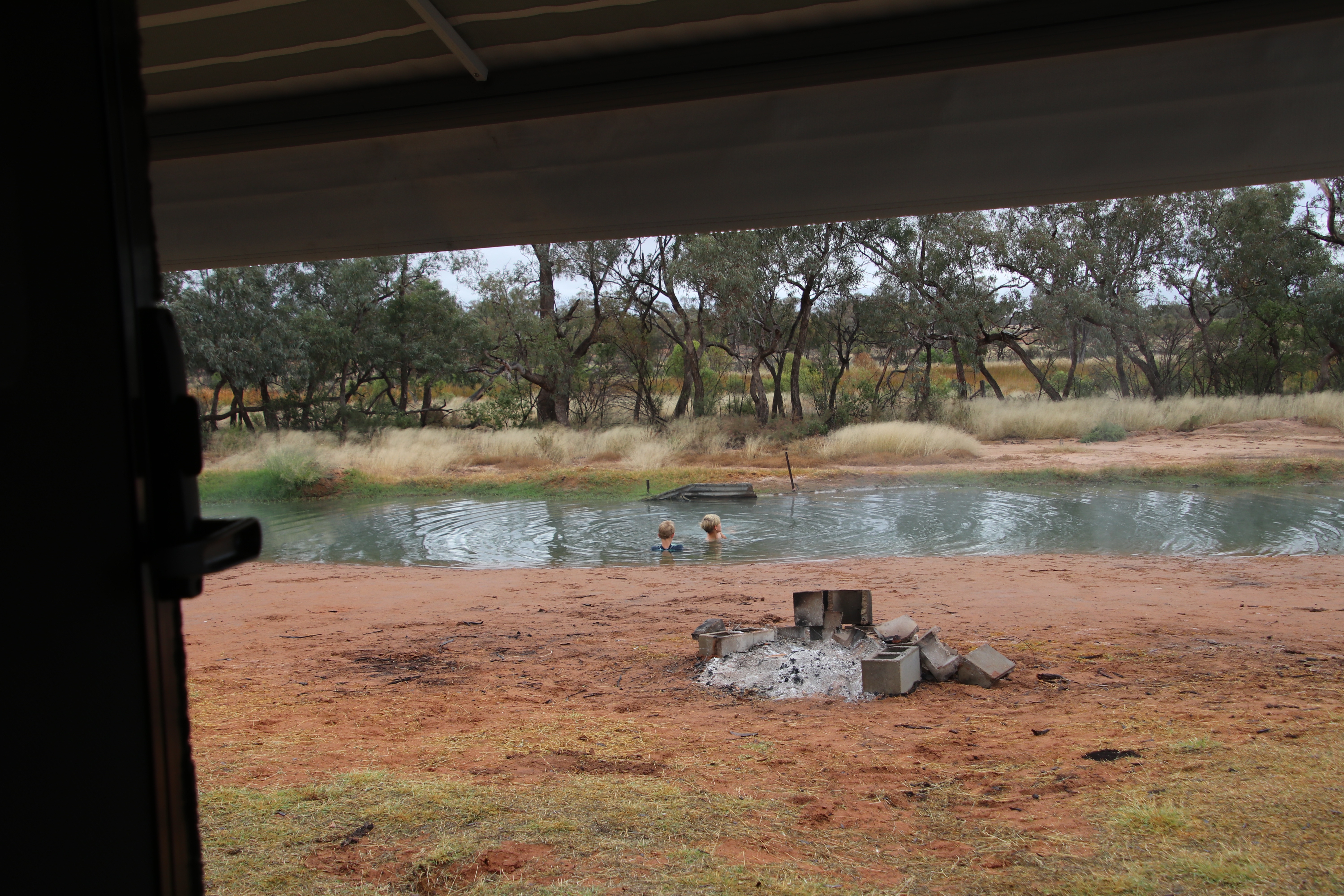 My first reaction to being stuck though was holy shit! We are literally stuck here miles from anywhere for who knows how long! Do we have enough food? I mean I expected to stay 2 nights but can I stretch it out to 3 possibly even more? Joel’s reaction was ‘how amazing is this, how many people can say they’ve been here and seen it rain, seen 22mls of rain turn dry, dusty soil into red mud that’s sticky and unforgiving and swam in the warm bore while the rain has fallen around you?’ That there pretty much sums up our personality’s, me forever worried about food, him forever thinking crazy out of the blue things are awesome!