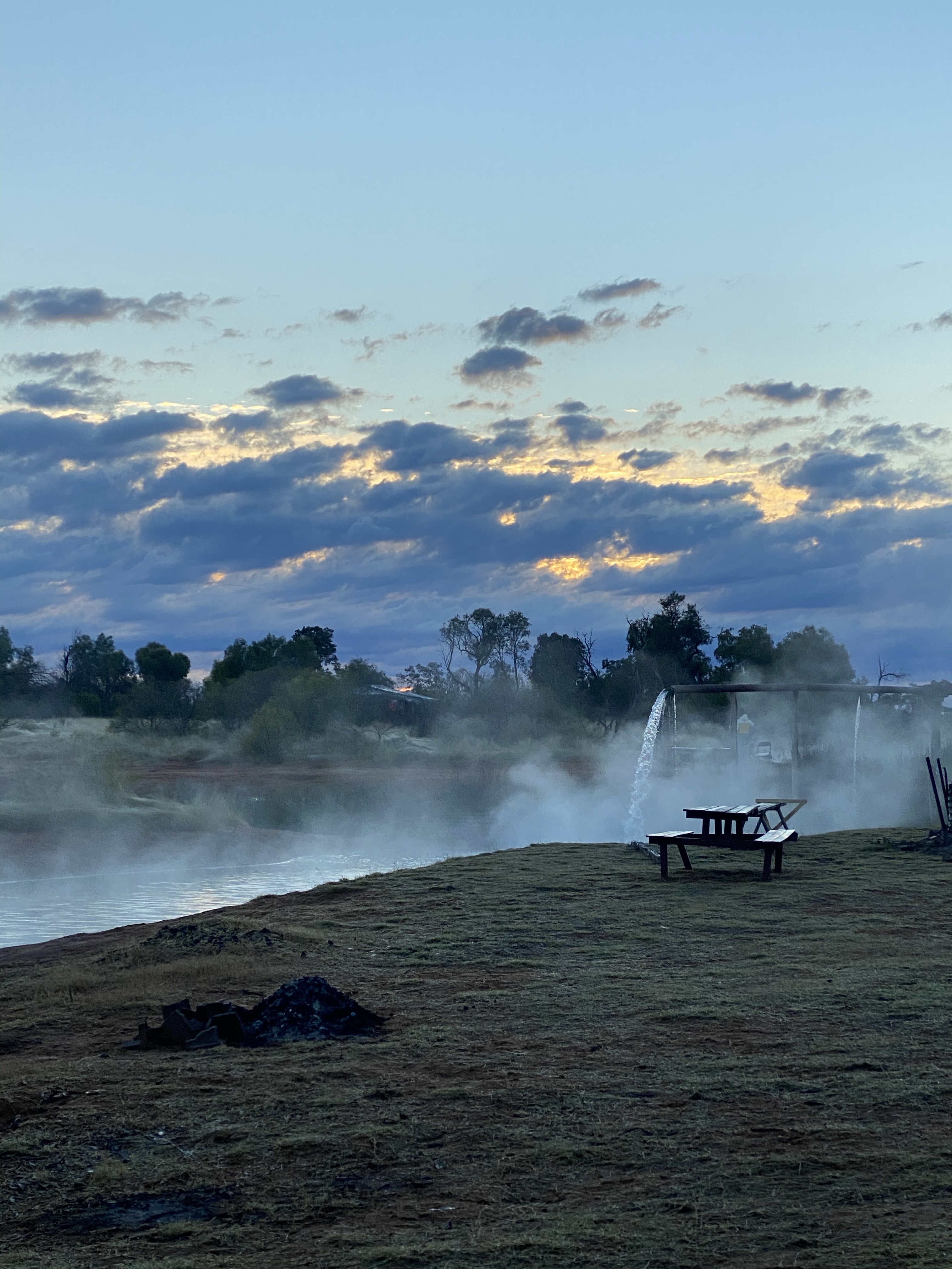 Our next stop was Charlotte Plains Station, about a 3 hour drive along the Balonne Highway towards Cunnamulla. Charlotte Plains is a working sheep and cattle station that gives you a couple of options to stay, there’s the old shearer’s quarters where you have access to power or the sites down at the natural artesian bore where there is a small toilet and shower block but no power and you can park right beside the flowing bore. We chose the bore and man oh man is it a sweet spot!
