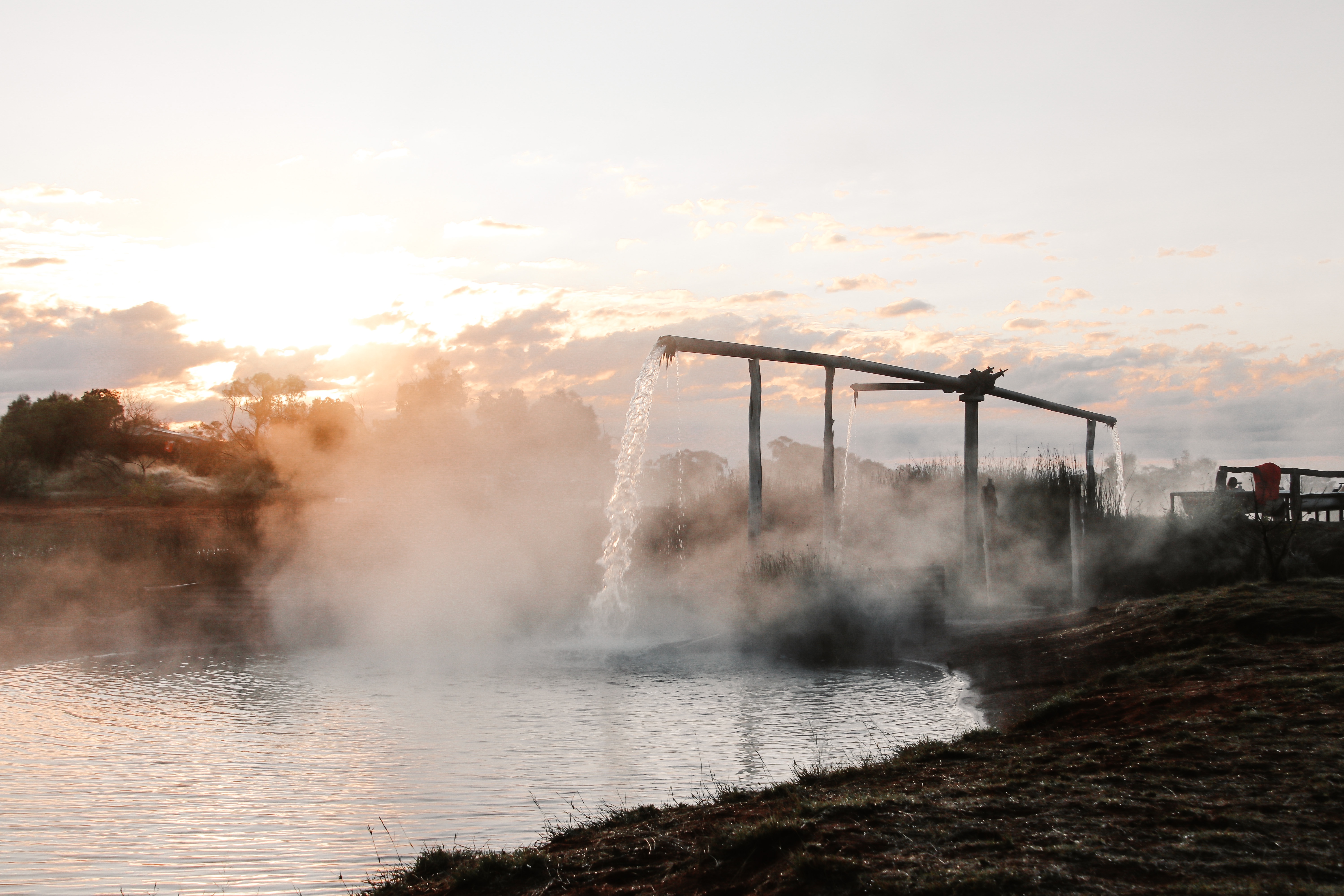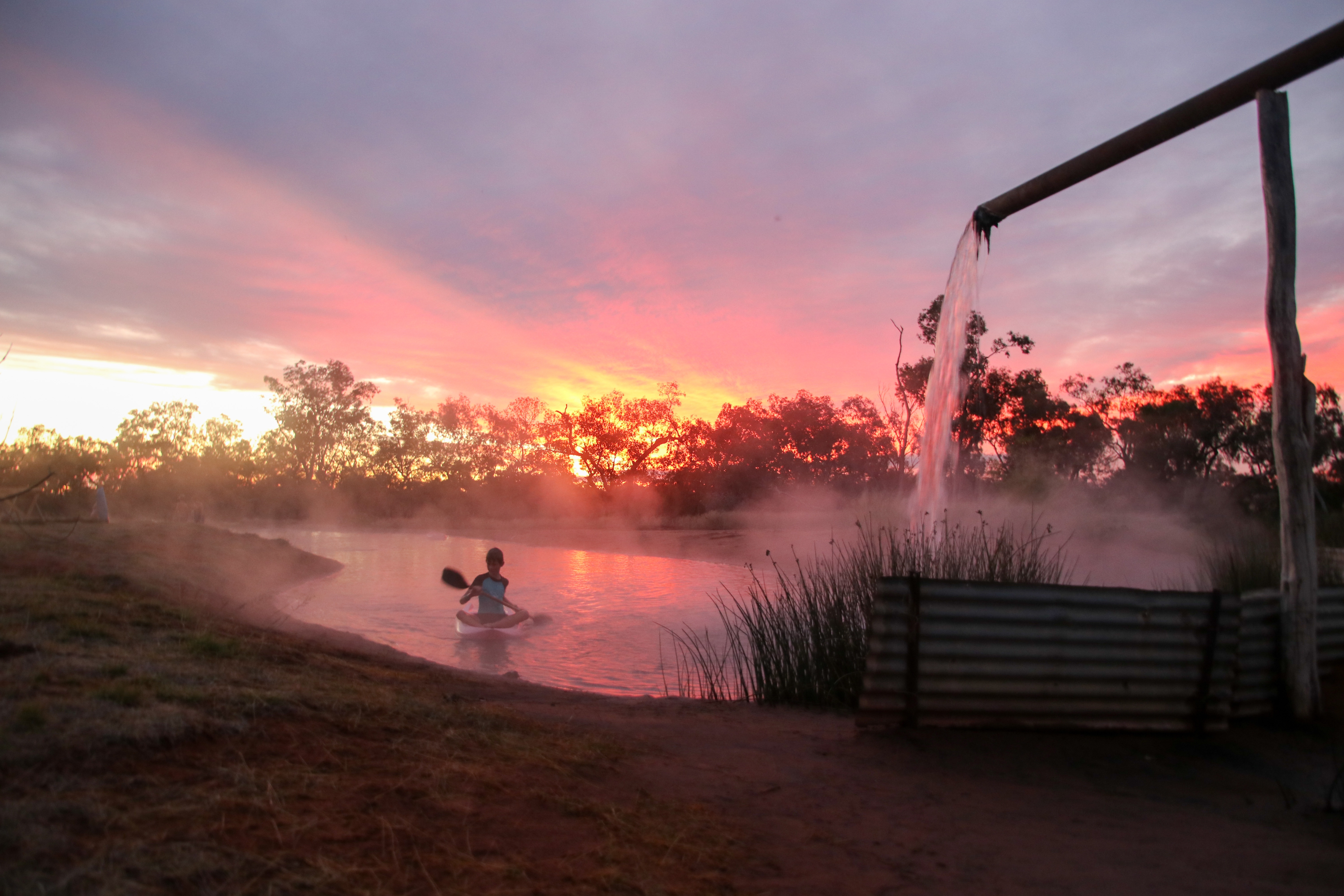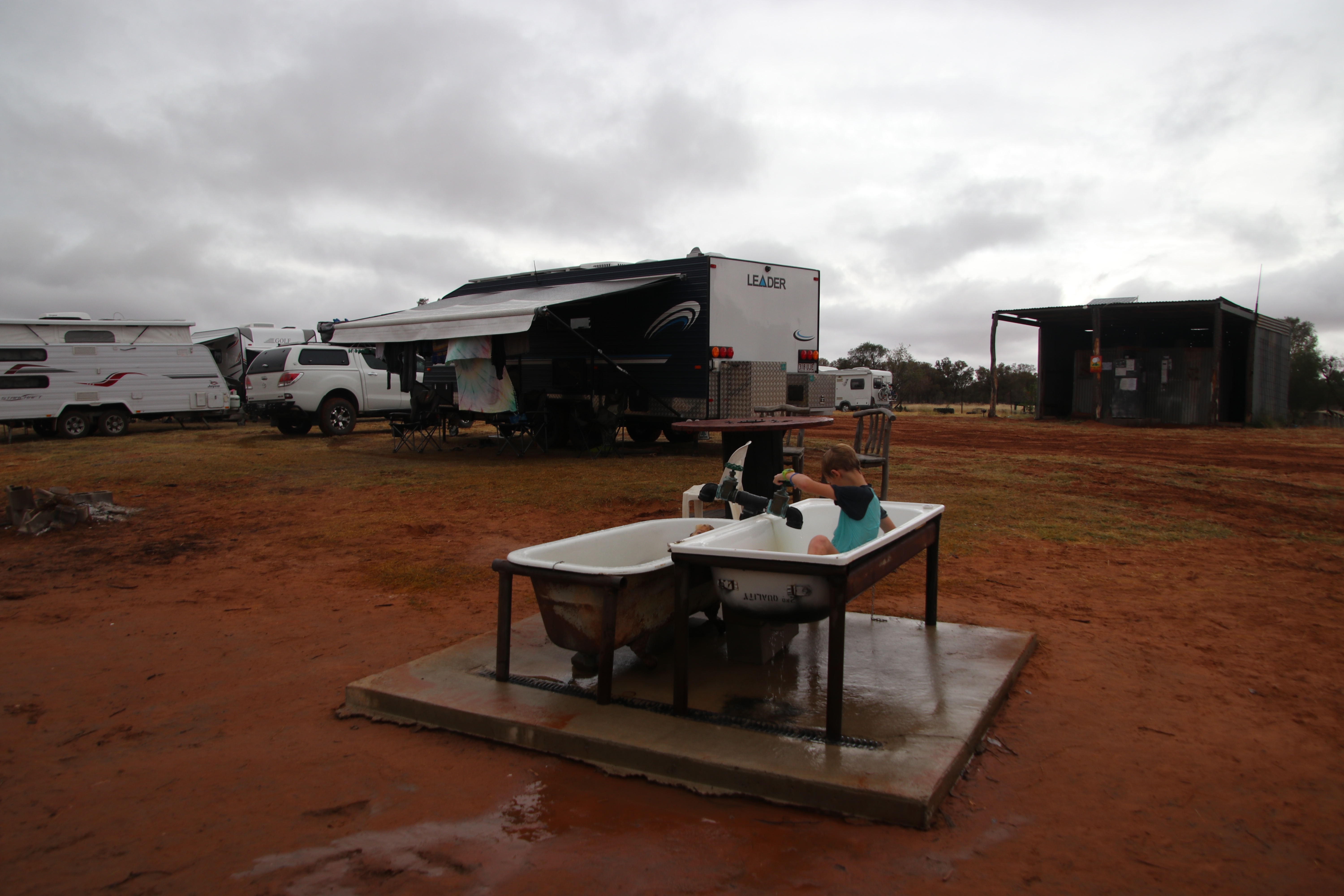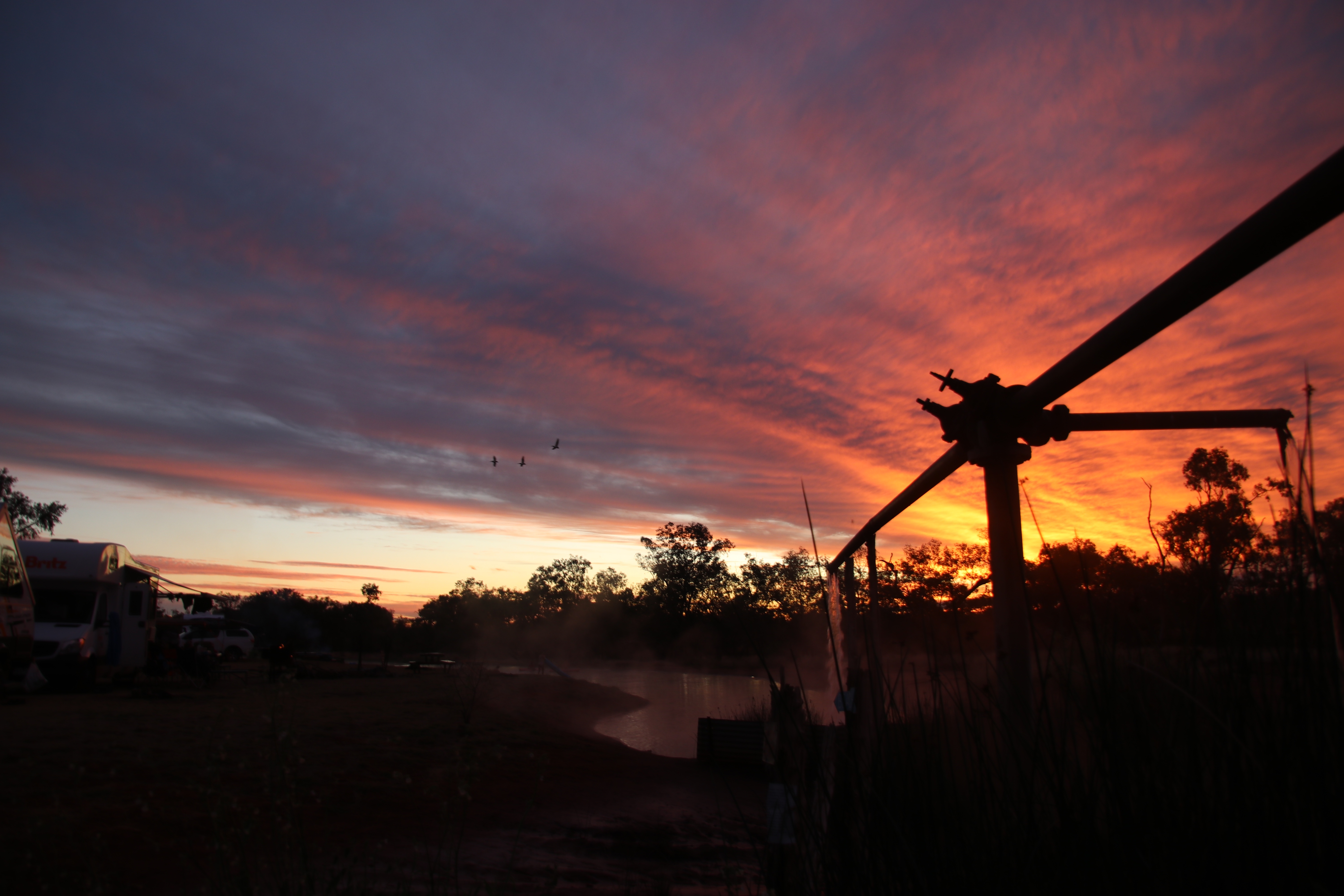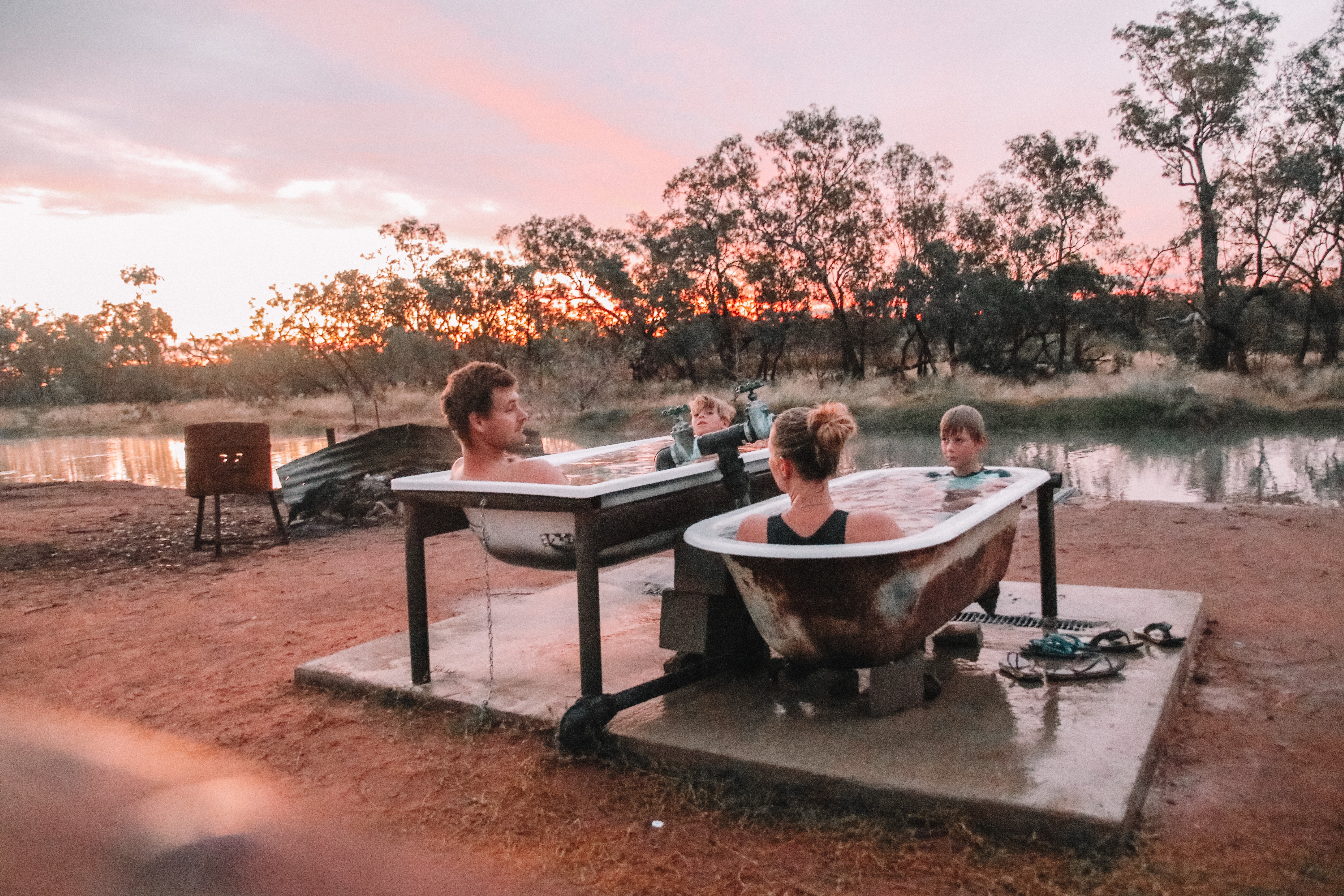 Charlotte Plains Station has put bath tubs along the shore of the artesian bore and you can choose to swim in the channel or fill the baths with the steaming water straight from underground. They have canoes there for the kids and the water coming out of the 100 year old pipe is a beautiful 44 degrees!!! This place is heaven, Archie and Ashton spent hours and hours in the bore and I’m not going to lie Joel and I spent hours and hours in the bath tubs soaking in the hot water and watching the kids playing, I mean really there was nothing much else to do, we were all stuck there for a few days and we all seemed to get along really well so some fantastic conversations, bonfires and a few small walks was how we spent our days stuck on the station! On the afternoon after the rain (our second night there) the sky put on the most magical sunset, it just kept getting better and better and was one of those moments you feel totally in awe of nature! We met some amazing people here and it made us realise that what people say is true, you really do meet some great people and have some good times living on the road.
